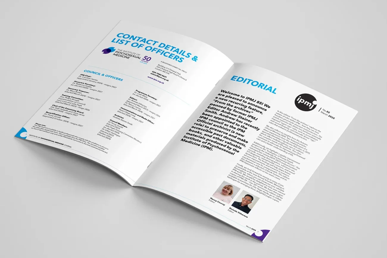 Quarterly digital journal design and setting for the Institute of Psychosexual Medicine.