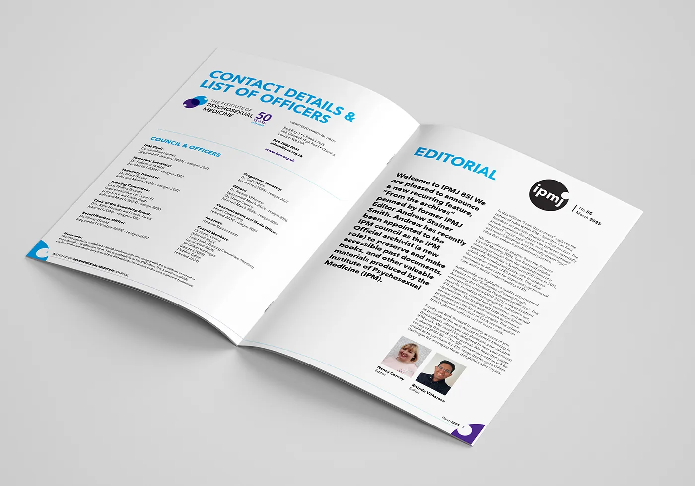 Quarterly digital journal design and setting for the Institute of Psychosexual Medicine.