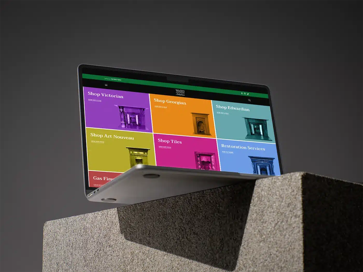 Website design, development and build for Ward Antique Fireplaces.
